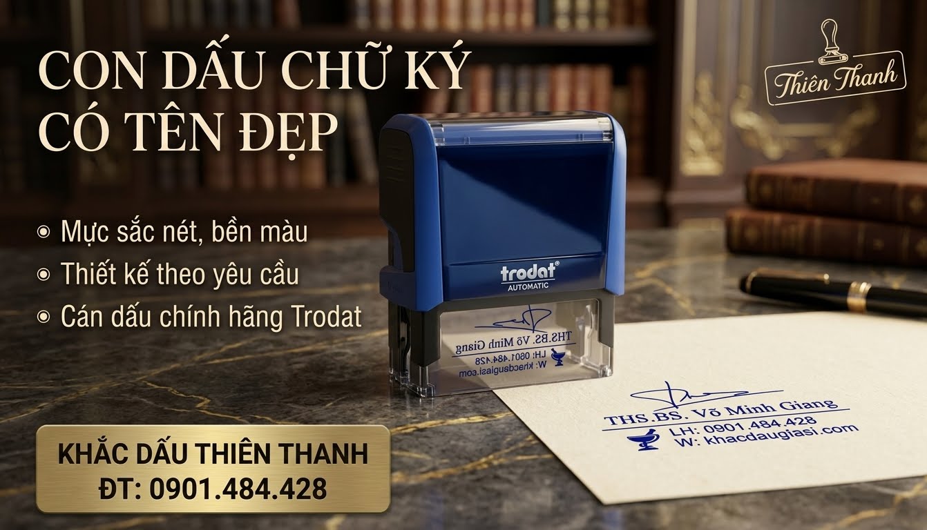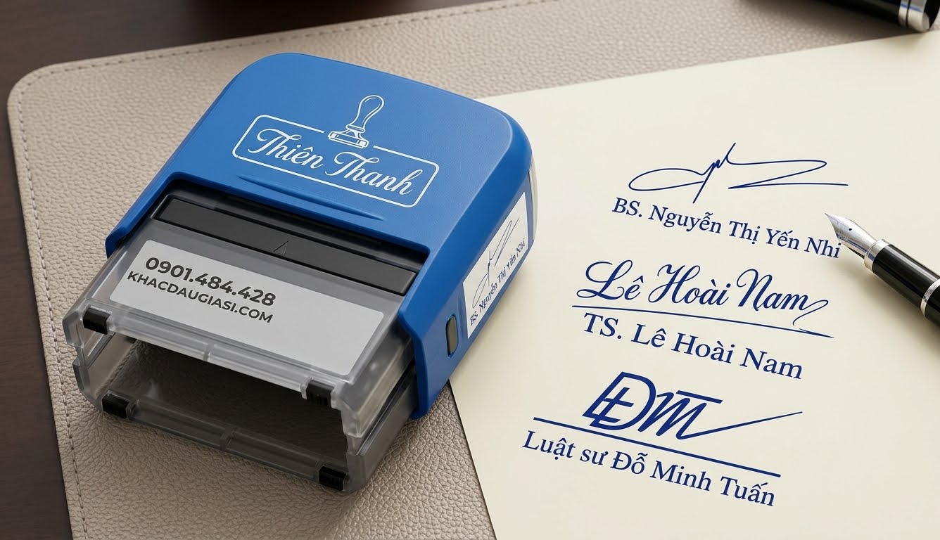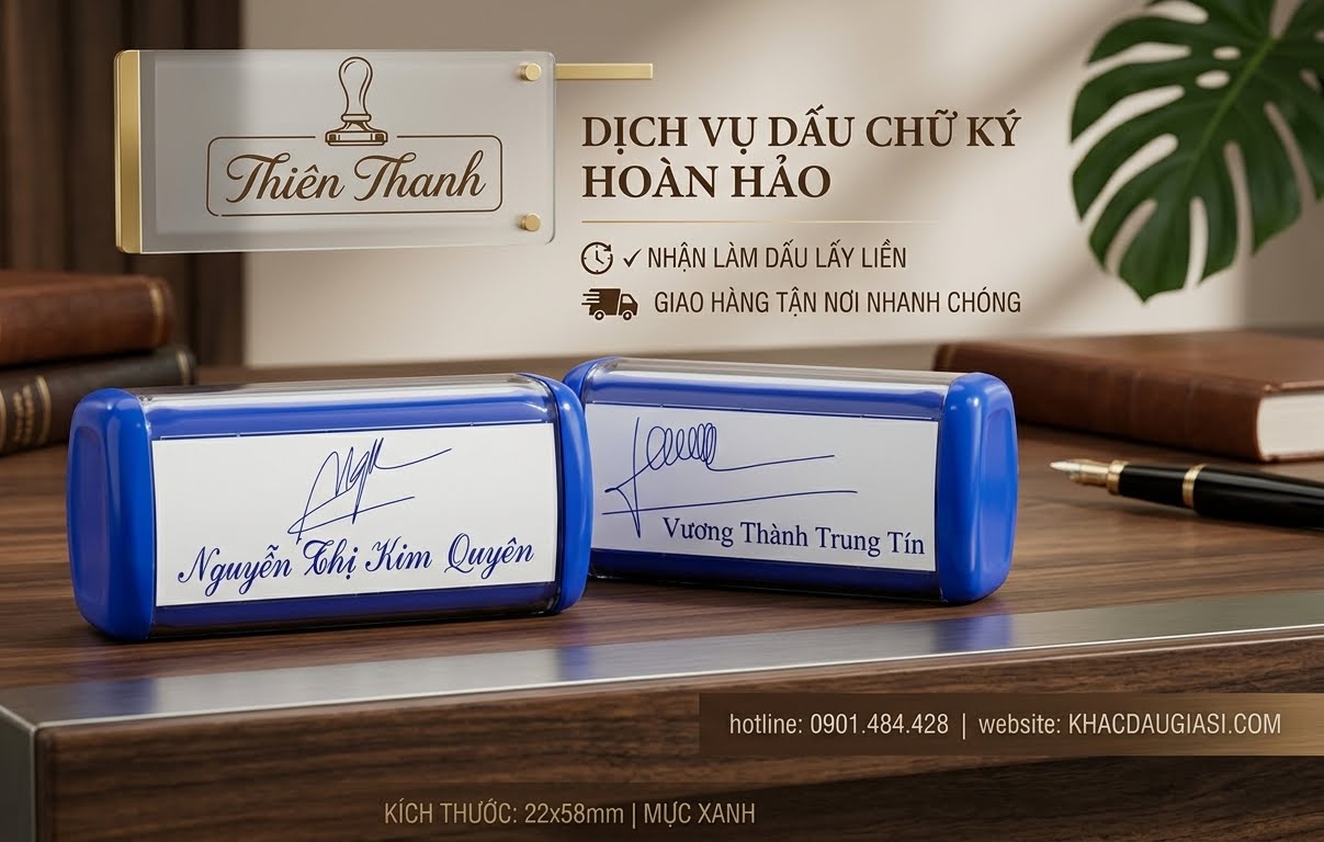 Để giải quyết triệt để vấn đề này, KHẮC DẤU CHỮ KÝ đã trở thành một công cụ đắc lực, một “người trợ lý” vô hình không thể thiếu đối với các nhà quản lý, doanh nhân và nhân viên văn phòng. Nếu bạn đang tìm kiếm một giải pháp ký duyệt tài liệu thần tốc, chính xác và mang đậm dấu ấn cá nhân, hãy cùng khám phá dịch vụ làm con dấu chữ ký đỉnh cao tại Khắc Dấu Thiên Thanh (Hotline: 0901.484.428).